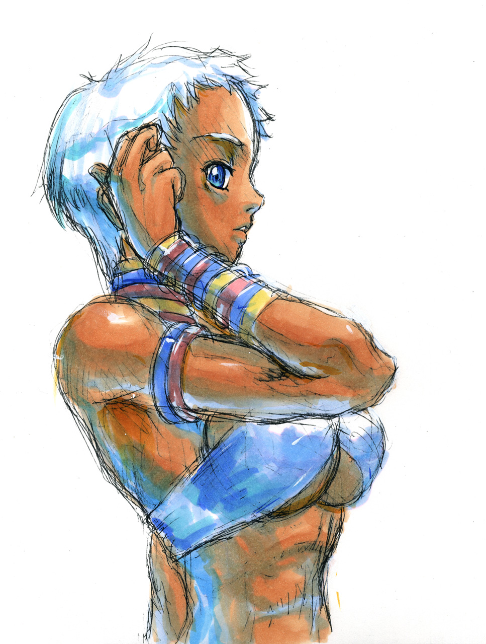 kanan, milfeulle sakuraba, takuto meyers, broccoli (company), galaxy angel, uniform, game cg, 00s, 1boy, 1girl, bike shorts, blue eyes, blue hair, boxing, boxing gloves, cape, cloak, dutch angle, long hair, pink hair, punching, punching bag, shirt, spandex