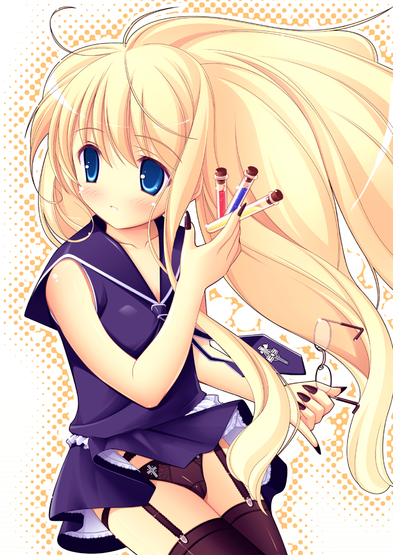 00s1girlblonde hairblue eyesblushcameltoecrossfemale focusgarter beltglasseslong hairnail polishnecktiepantiespantyshotschool uniformskirtsolothighhighsunderwearupskirtvery long hairvialzettai ryouiki