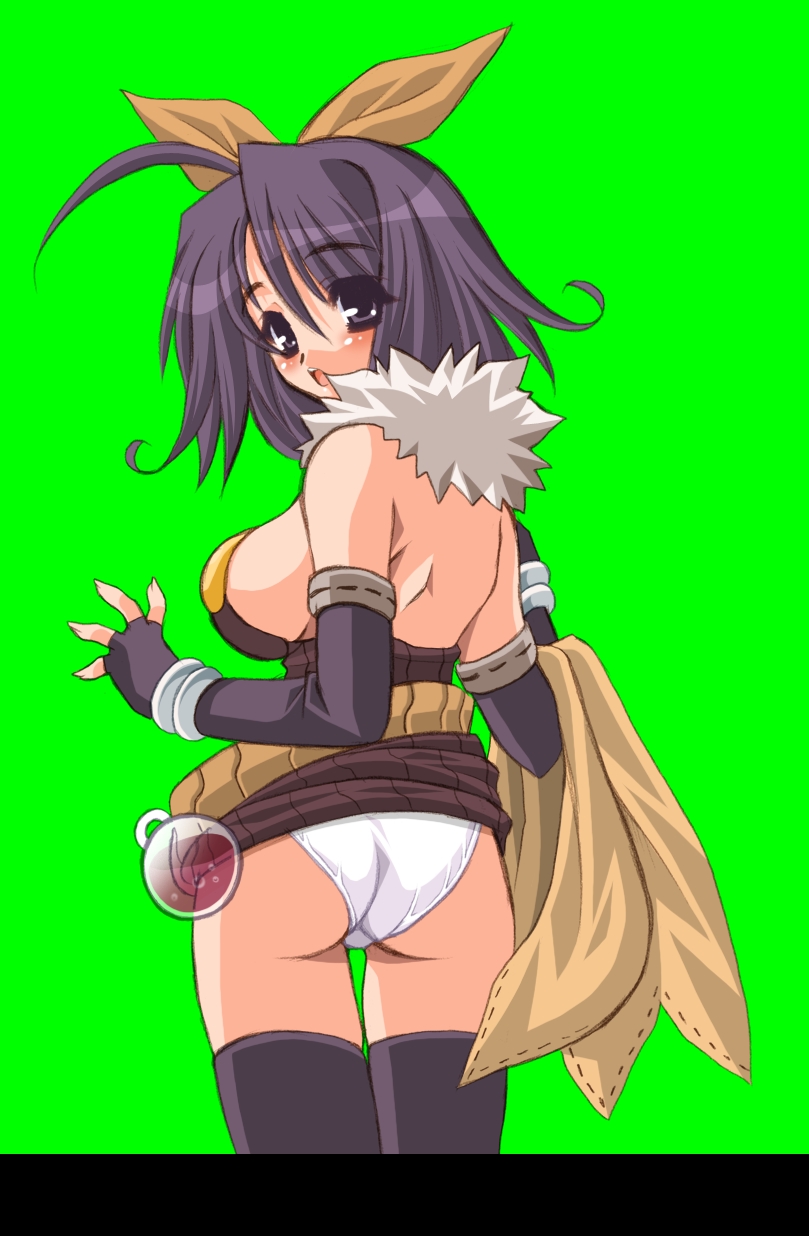 1girlahogealchemistfemale focuslooking backpantiespurple eyespurple hairribbonshort hairsolothighhighsunderwearwhite panties