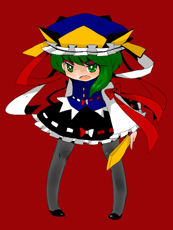1girlfemale focusgreen eyesgreen hairhatmatching hair/eyespantyhoseribbonrod of remorseshort hairsolo