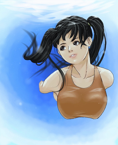 furude rika, houjou satoko, ryuuguu rena, higurashi no naku koro ni, third-party edit, 00s, 3girls, armpits, ball, beach, beachball, bikini, black hair, blonde hair, blue eyes, braid, brown hair, closed eyes, day, holding hands, lens flare, multiple girls, ocean, one-piece swimsuit, outdoors, red eyes, side-tie bikini bottom, standing, striped clothes, striped one-piece swimsuit, swimsuit, twin braids