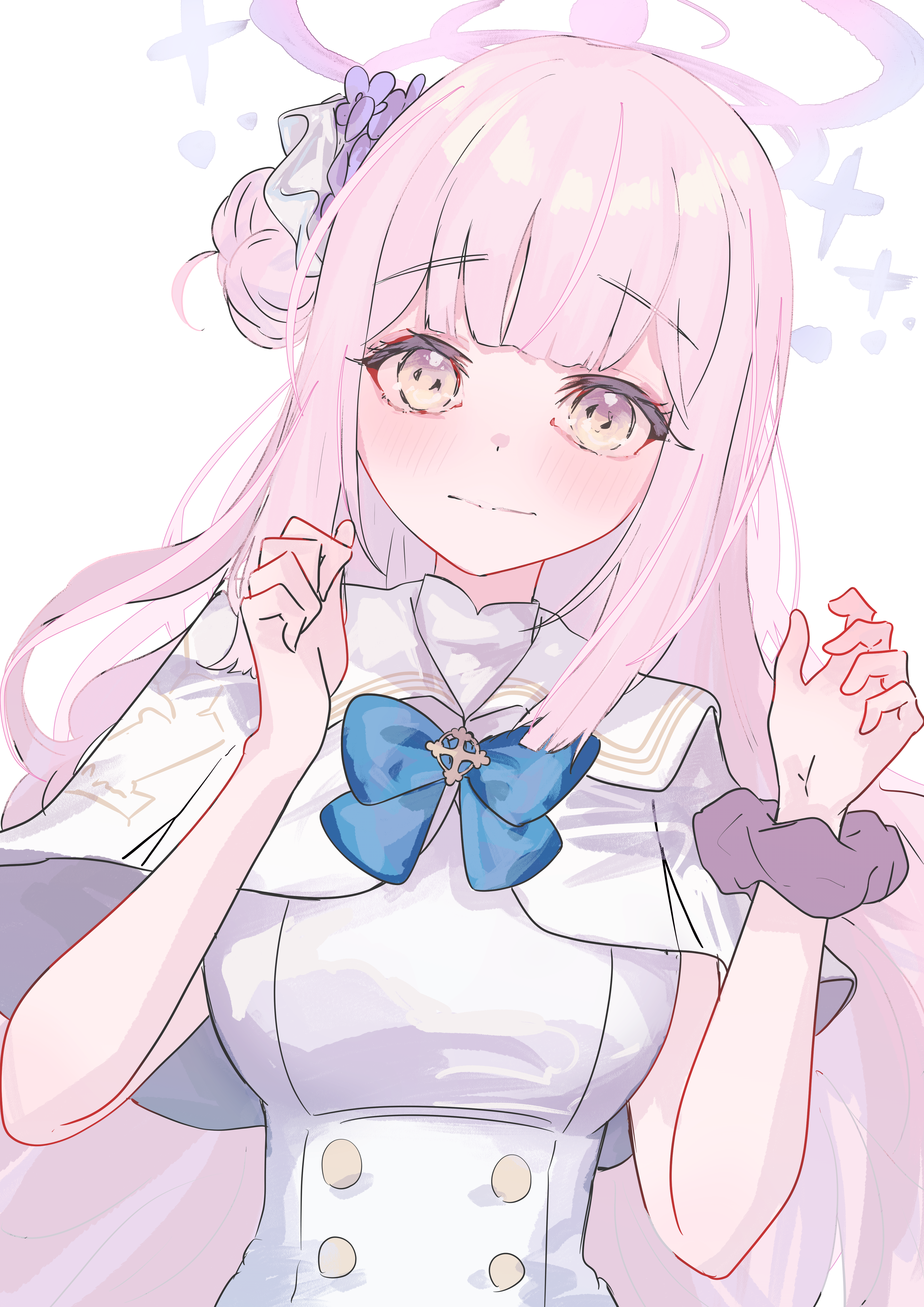 night known, evernight (honkai: star rail), march 7th (honkai: star rail), honkai: star rail, honkai (series), commentary, highres, paid reward available, 1girl, alternate costume, bare shoulders, bikini, black flower, black gloves, blush, bow, bow bikini, breasts, cleavage, collar, flower, gloves, hair between eyes, hair flower, hair intakes, hair ornament, hairclip, holding, holding umbrella, index finger raised, jewelry, large breasts, long hair, looking at viewer, lying, on side, parallel hairclips, parted lips, pink hair, red eyes, red petals, red umbrella, smile, solo, stomach, swimsuit, thighlet, thighs, umbrella, white bikini, white collar