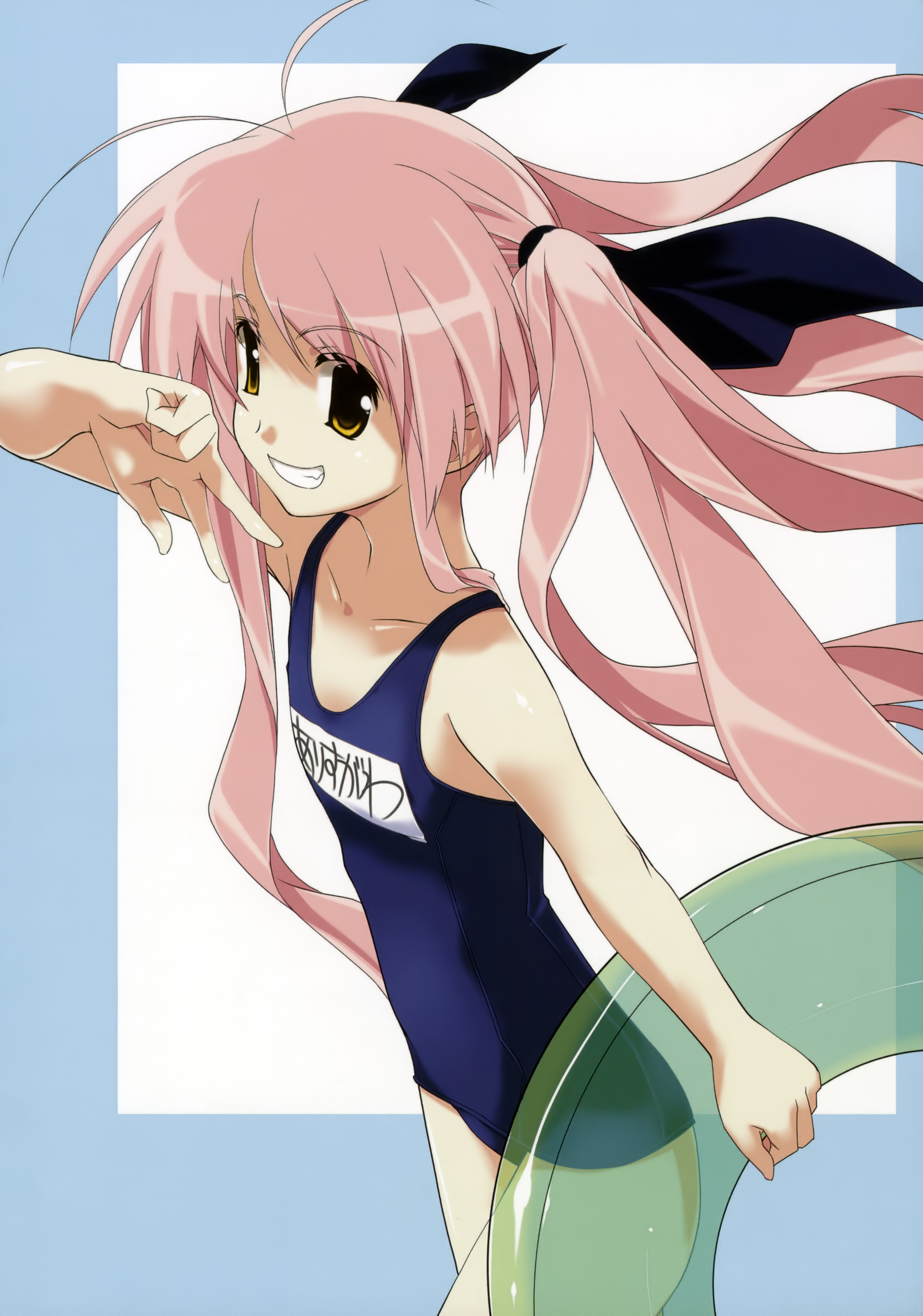 brown eyesflat chestgrinhair ribboninnertubelong hairpink hairribbonsmilesoloswim ringtwintailsvvery long hair