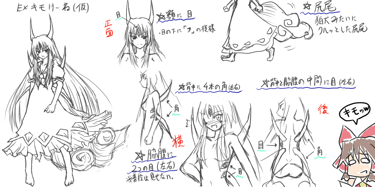 2girlsbarefootblushbowchibiextra eyesfemale focushair bowhair tubeshornslong hairmonochromemultiple girlsnudepartially coloredsketchtail