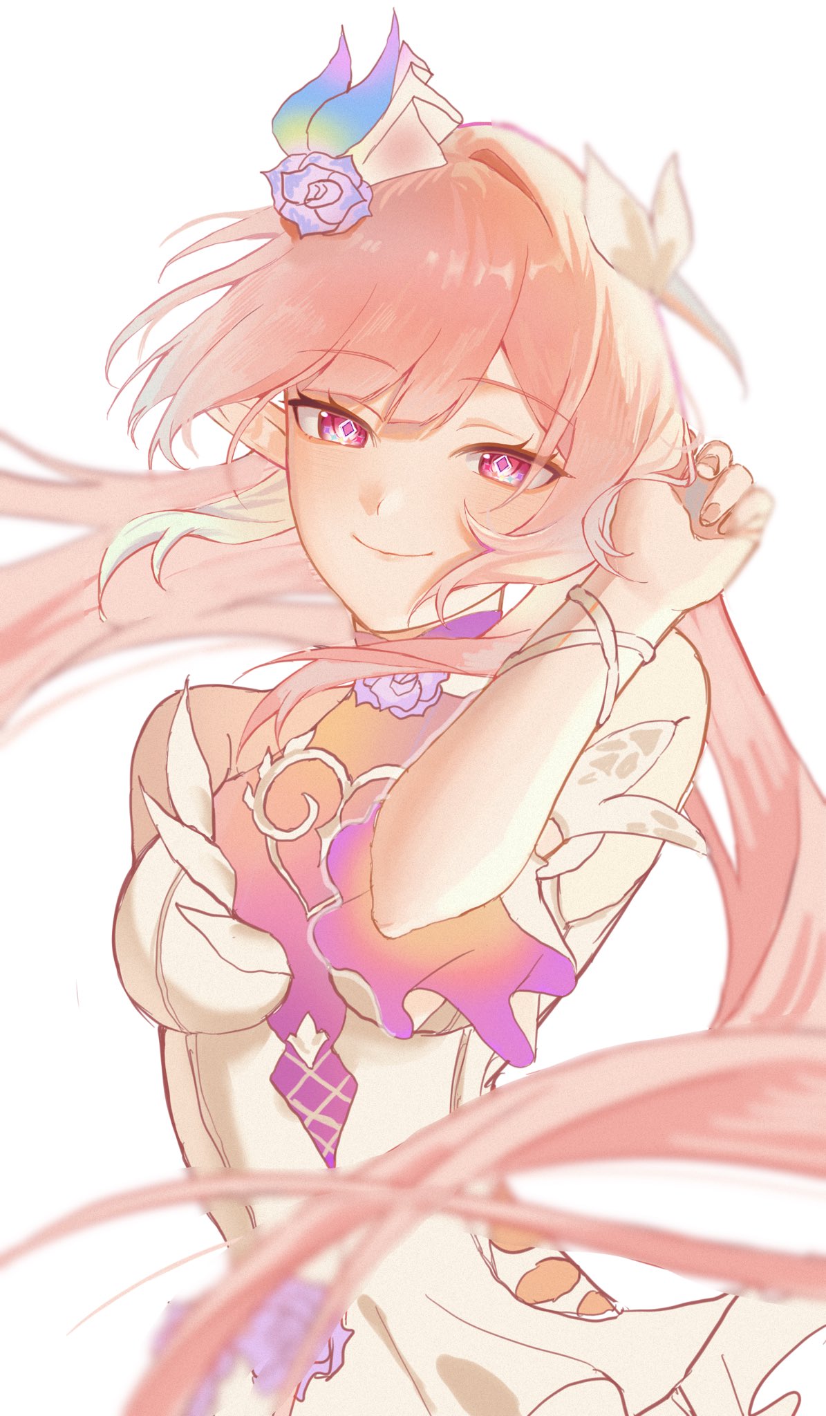 0910 22221girlbare shouldersbreastsdiamond (shape)diamond-shaped pupilsdressflowerhair flowerhair ornamentlarge breastslong hairlooking at viewermulticolored hairpink hairpurple eyessimple backgroundsmilesolosymbol-shaped pupilstwo-tone hairvery long hairwhite backgroundwhite dresswhite hair