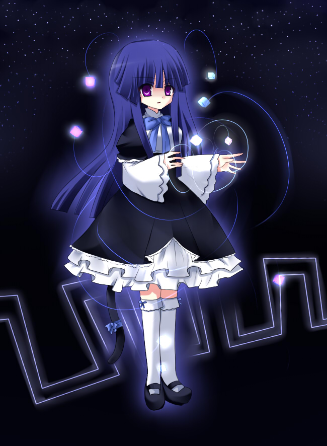00s1girlblue haircat taildressfemale focuslong hairnightpurple eyesribbonskysockssolostar (sky)star (symbol)starry skytail