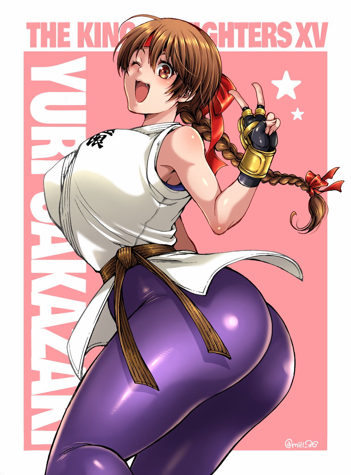 muimui, kawasumi mai, kanon, 1girl, anal, anus, ass, bent over, black gloves, black thighhighs, breasts, censored, cuffs, elbow gloves, enema, female focus, gloves, green eyes, hair ornament, hair ribbon, hanging breasts, huge ass, huge belly, huge breasts, indoors, inflation, large breasts, long hair, looking at viewer, looking back, mosaic censoring, nipples, nude, one eye closed, open mouth, ponytail, pregnant, purple hair, pussy, rape, ribbon, sideboob, slave, solo, standing, stomach bulge, teeth, thighhighs, upper teeth only, wrist cuffs
