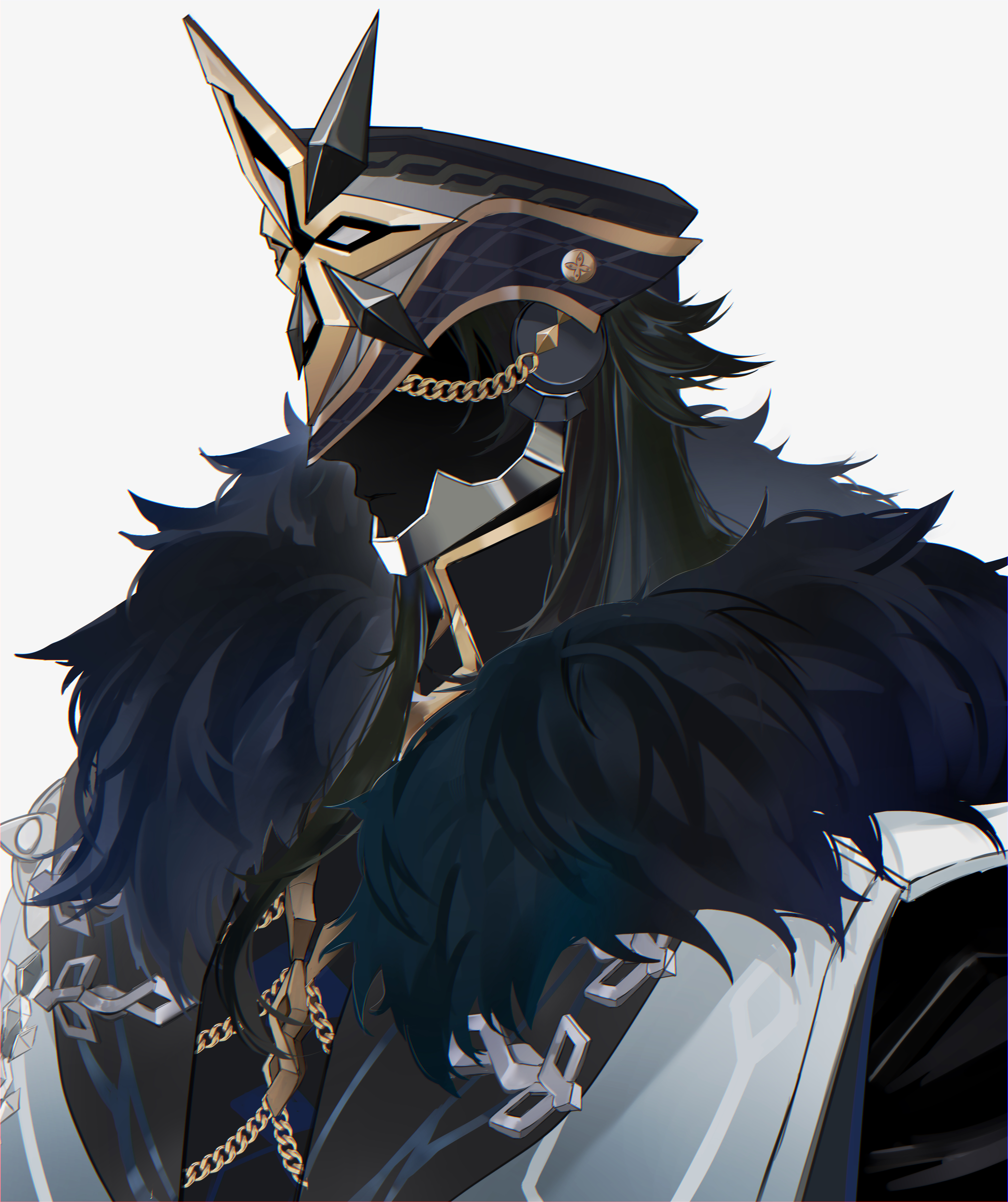 1boyaiguilletteblack hairblack helmetblack jacketcoatcollared jacketfacelessfaceless malefatui coatfrom sidefur trimfur-trimmed coathelmetjacketmale focusmedium hairsimple backgroundsoloupper bodywhite backgroundwhite coat