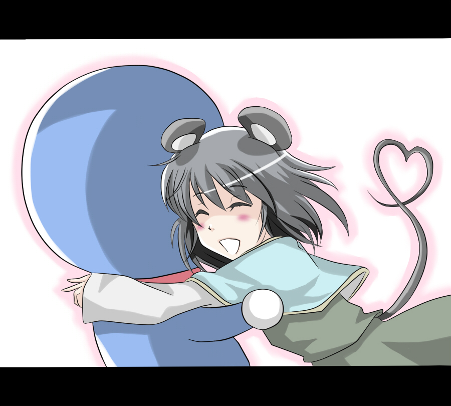 1boy1girlanimal earsclosed eyesfemale focusgrey hairheartheart tailhugletterboxedsolotailwhite background