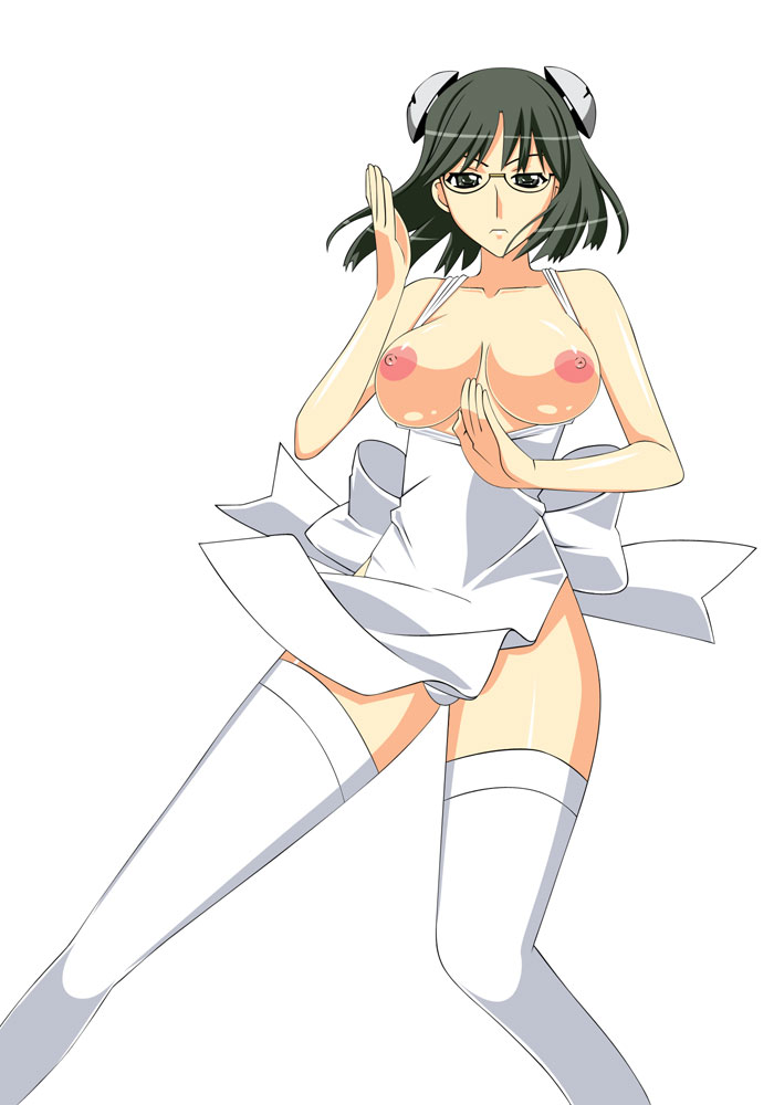 00s1girlapronbreastsbreasts outfemale focusfrownglassesgreen hairhuge breastsmaidmaid apronnipplessimple backgroundsolothighhighswhite backgroundwhite thighhighs