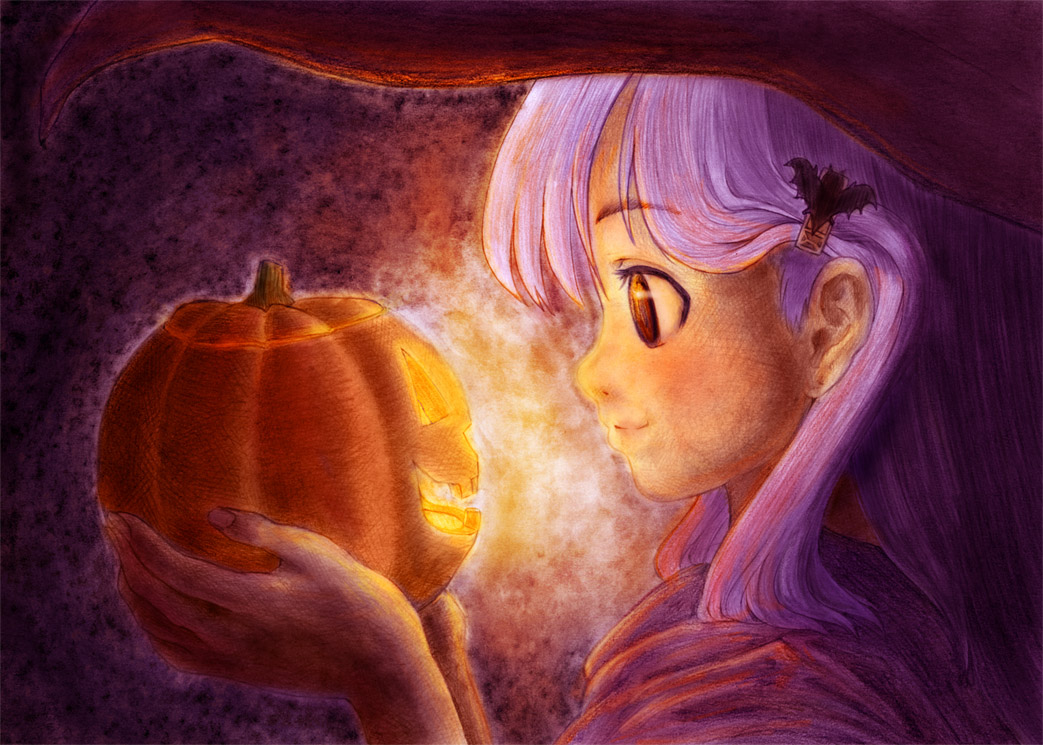 bat (animal)hair ornamenthaircliphalloweenjack-o'-lanternpumpkinpurple hairsolowitchyellow eyes