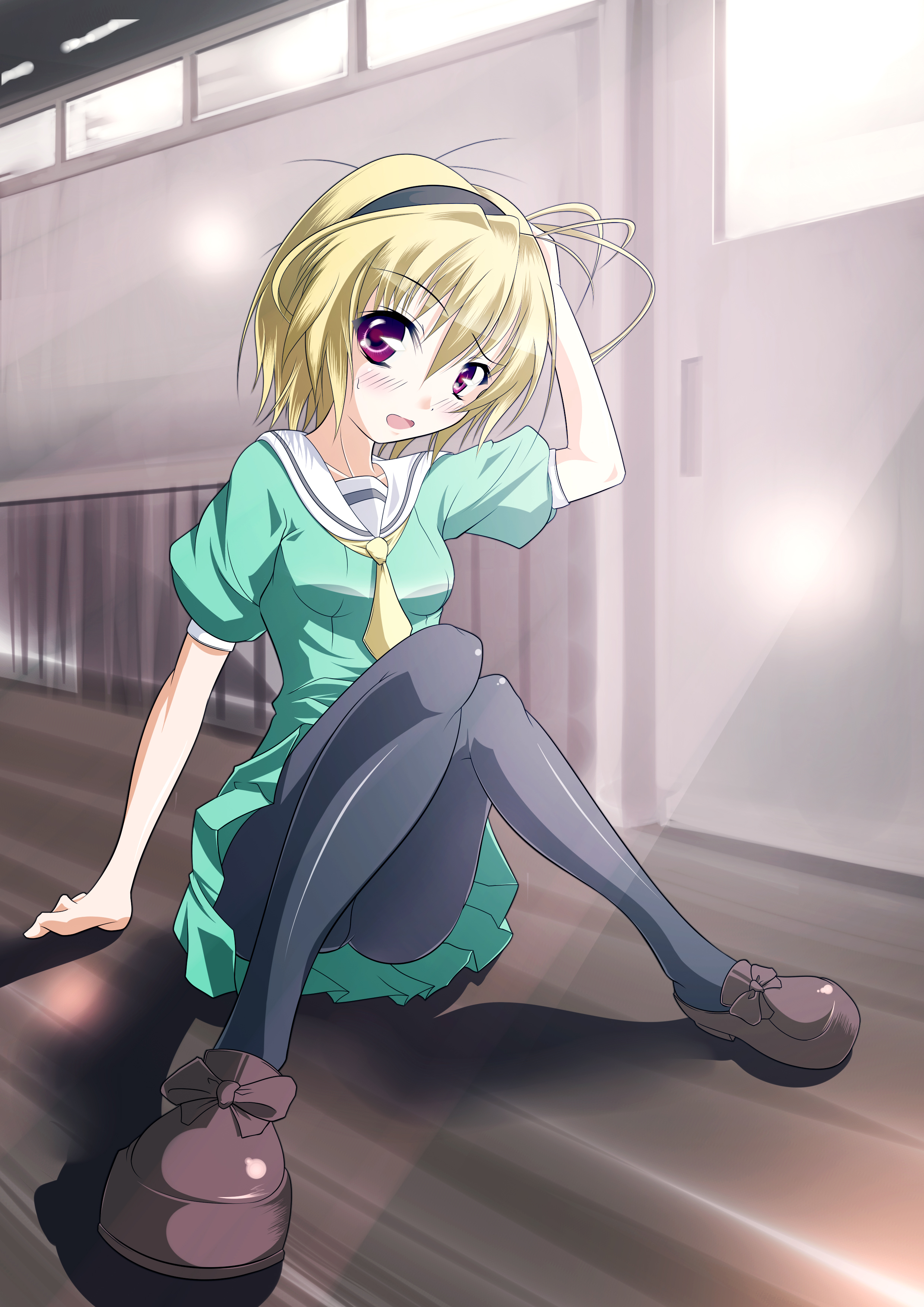desuno, kusugawa sasara, to heart (series), to heart 2, 00s, 1girl, blonde hair, blue hair, bow, bow panties, clothes pull, female focus, long hair, lying, panties, panty pull, pink panties, skirt, skirt pull, solo, underwear