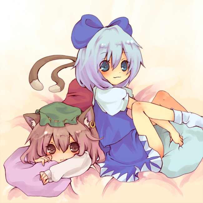 mizuna (water emp-tei), botan (clannad), fujibayashi kyou, clannad, 00s, chibi, helmet, school uniform, serafuku, thighhighs
