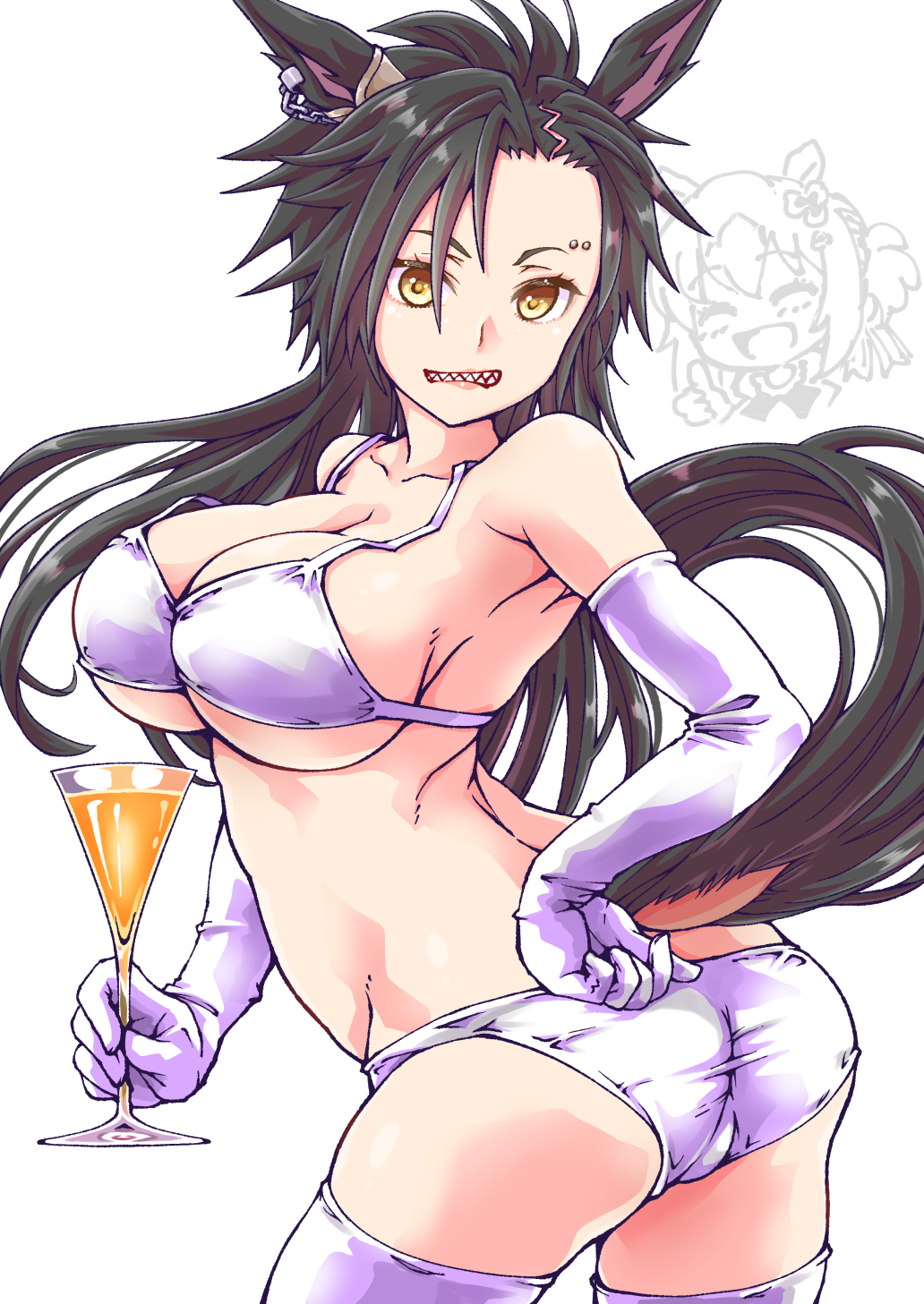2girlsalternate breast size (larger)animal ear piercinganimal earsarmpitsassbare shouldersblack hairbreastscleavageclenched teethcocktailcocktail glasscontrappostocupdrinking glassear ornamentear piercingelbow gloveseyebrow piercingface piercingfrom sidegloveshair between eyesholdingholding cuphorse earshorse girlhorse taillong hairlooking at viewermedium breastsmultiple girlspiercingsimple backgroundsolo focustailteeththighhighsvery long hairwhite backgroundwhite gloveswhite thighhighsyellow eyes