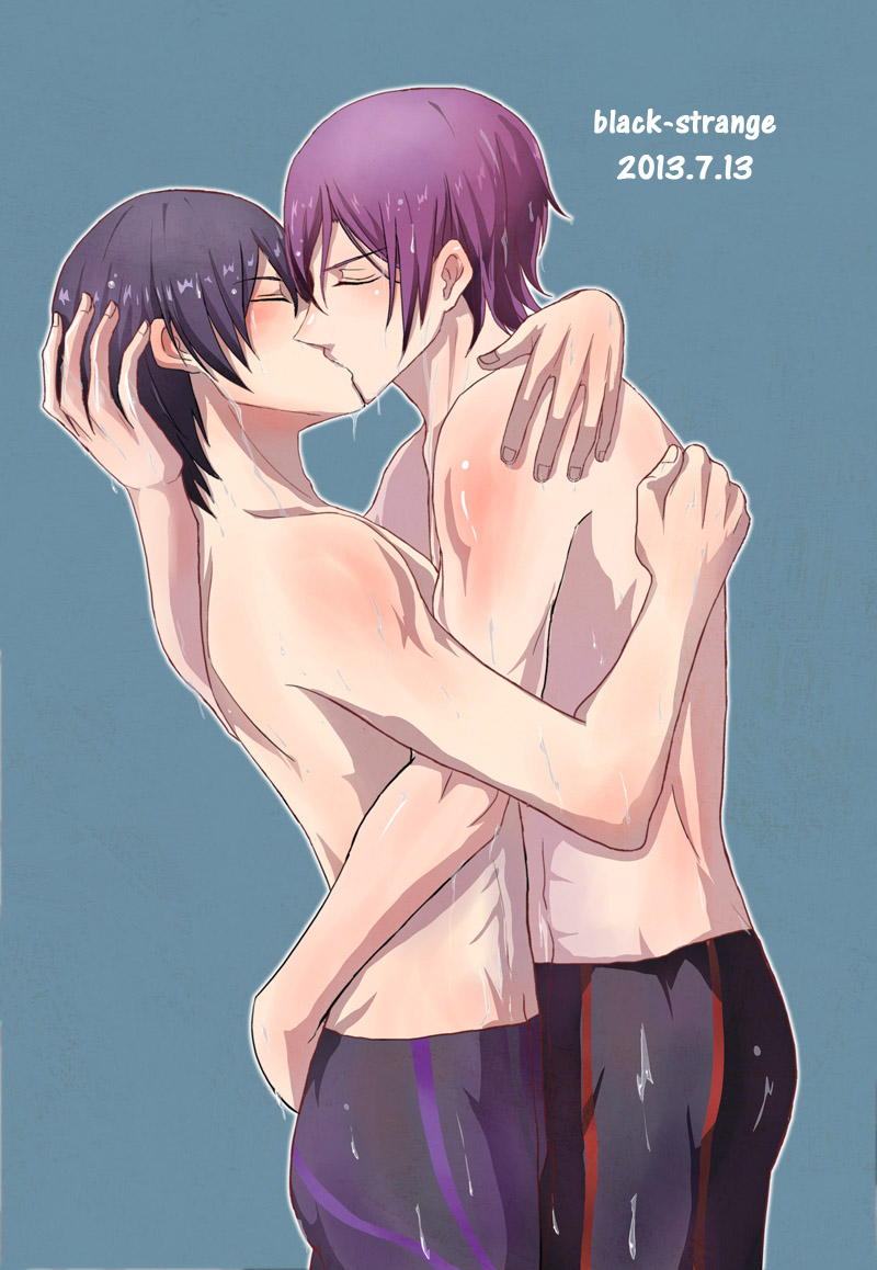 2boysblack hairblack-strangeblushclenched handclosed eyescoupleduoeyebrows visible through hairFlag for Deletionfrom sidegayhair between eyeshead grabhughumanhuman onlykissingmalemale onlymultiple boysmultiple malesneckpassionatepurple hairromanticshort hairstandingswimsuitwetwet hairyaoi