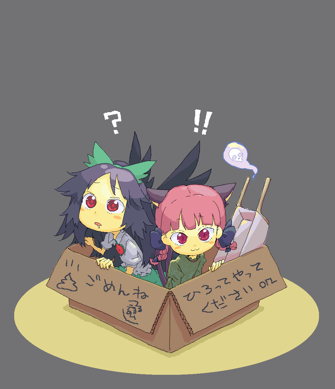 :31boy2girlsaged downblack hairbowboxbraidcardboard boxcat tailfemale focusfor adoptionghosthair bowin boxin containermultiple girlsmultiple tailsoekakired eyesred hairsalivatailtwin braidstwintailswheelbarrowwings