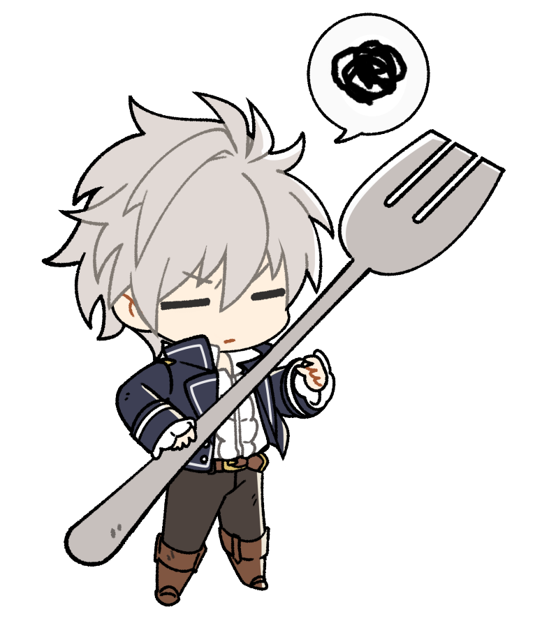 1boyankle bootsblack pantsblue jacketblue sleevesblush stickersbootsbrown bootsbuttonscenter frillschibichibi onlyclosed eyesflat colorfrilled sleevesfrillsfull bodygrey hairhair between eyeshigh collarholdingholding sporkjacketlapelslegs apartmale focusopen clothesopen jacketoversized objectpantspoet shirtpopped collarshirtshort hairsidelightingsimple backgroundsleeve cuffssolospeech bubblespoken squigglesporksquigglestandingtransparent backgroundunbuttoned jacketwhite shirt