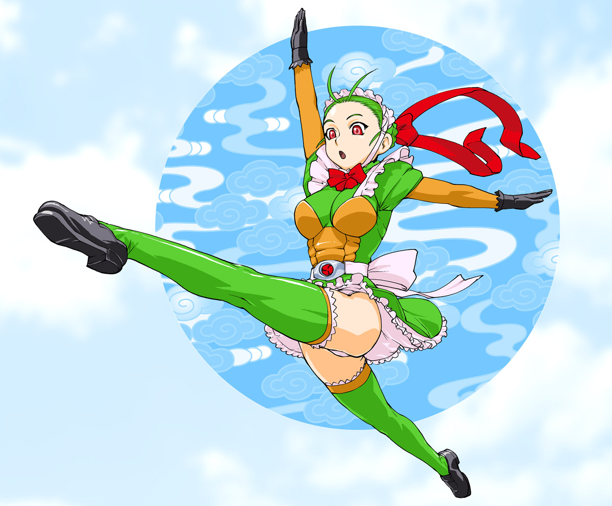 1girlfemale focusfull bodygloveshairbandmaidpantiespantyshotred eyesribbonskirtsolothighhighsunderwearupskirt