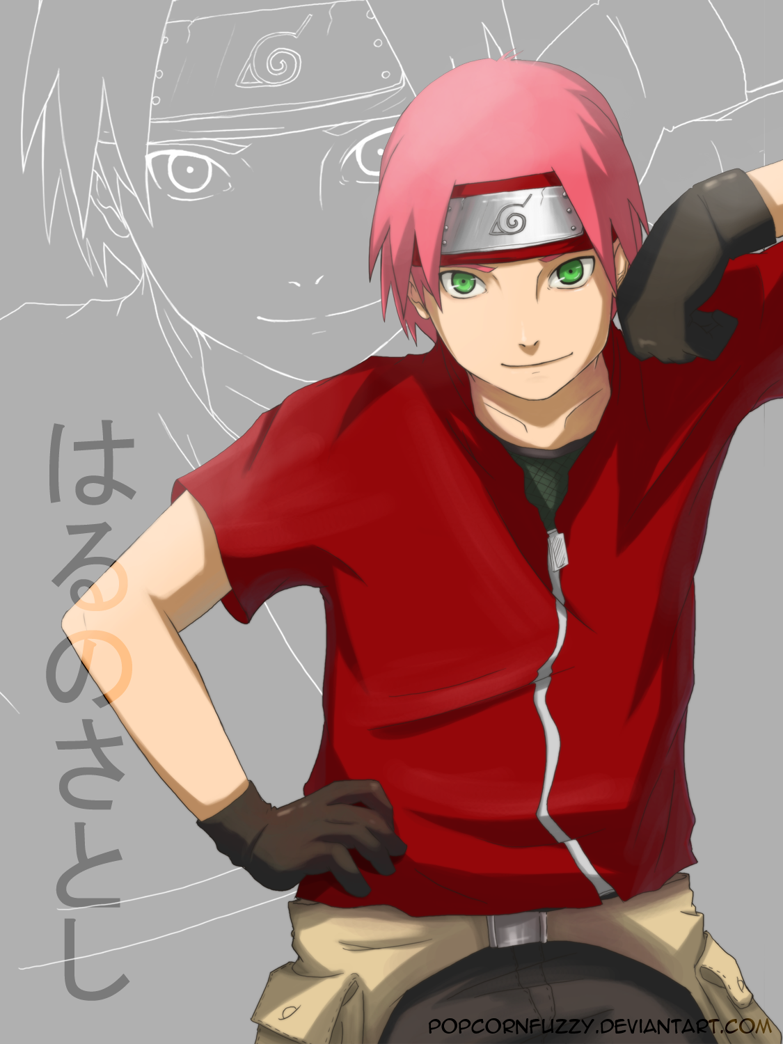 1boybeltblack glovesfemale focusgenderswapgenderswap (ftm)glovesgreen eyeshand on own hipheadbandheaddressjapanese textkonohagakure symbollight smilelooking at viewerpantspink hairred shirtsexy no jutsushirtshort sleevessmilesolotext focusupper bodyutility beltwatermarkweb addresszipperzoom layer