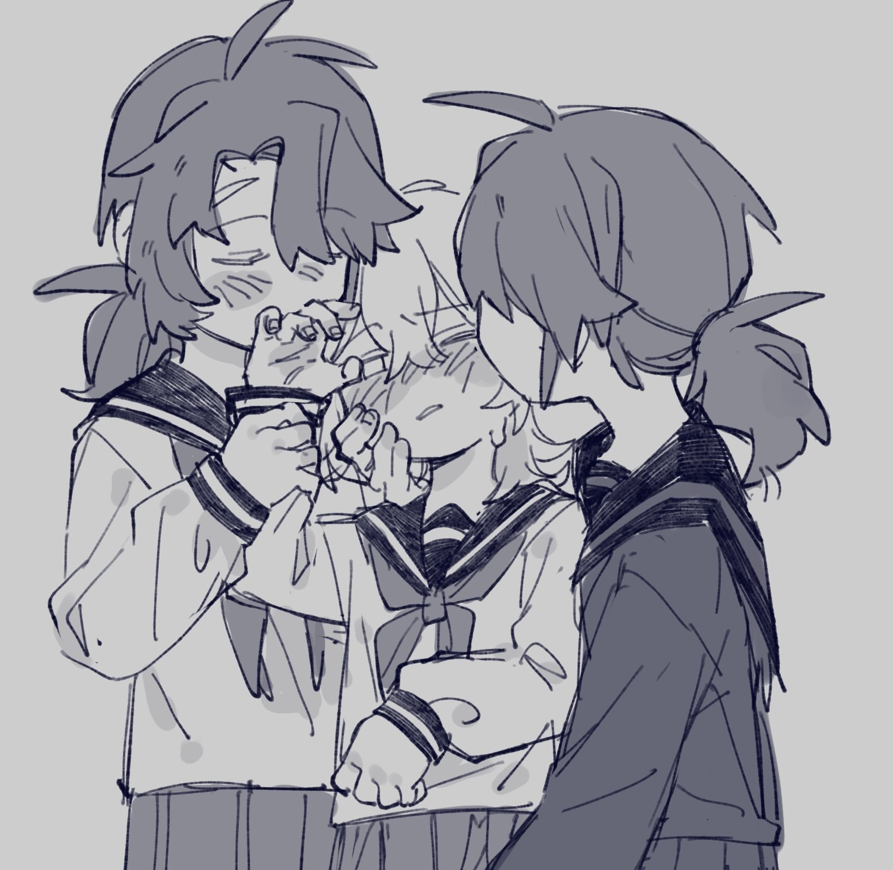 kobayashi jin, sawachika eri, school rumble, 00s, 1girl, blonde hair, female focus, ribbon, school uniform, serafuku, simple background, smile, solo, thighs, twintails, white background