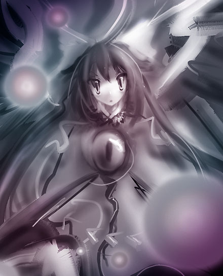 sinb (gfriend), gfriend, real life, commentary, highres, 1girl, blush, buddycookiedan, closed mouth, cowboy shot, eyeshadow, frills, grey hair, halterneck, letterboxed, makeup, multiple wings, red eyeshadow, seraph, simple background, solo, twintails, twitter username, viviz, white background, wings