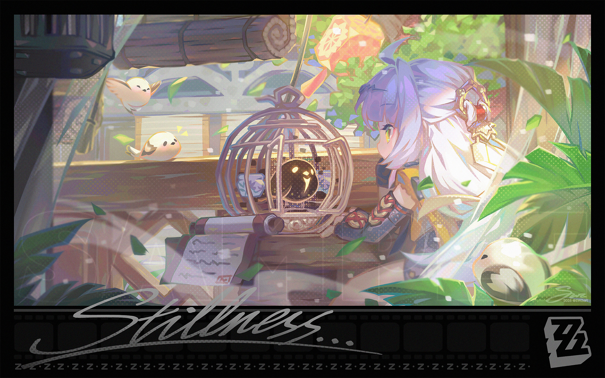 1girl4othersahogeanimalasymmetrical glovesbirdbirdcageblack birdblack borderblack glovesblack unitardbordercagechairchibicoincoin on stringelbow glovesenglish textfencefrom sidegloveshair ornamenthairpinhand on own chinhigh-waist shortsjacketlanternleaflong hairlooking at anothermultiple otherspaper lanternplantring hair ornamentscrollshortssingle elbow glovesingle hair intakesittingtabletreeuneven gloveswhite birdwhite hairwooden fenceyellow eyesyellow jacket