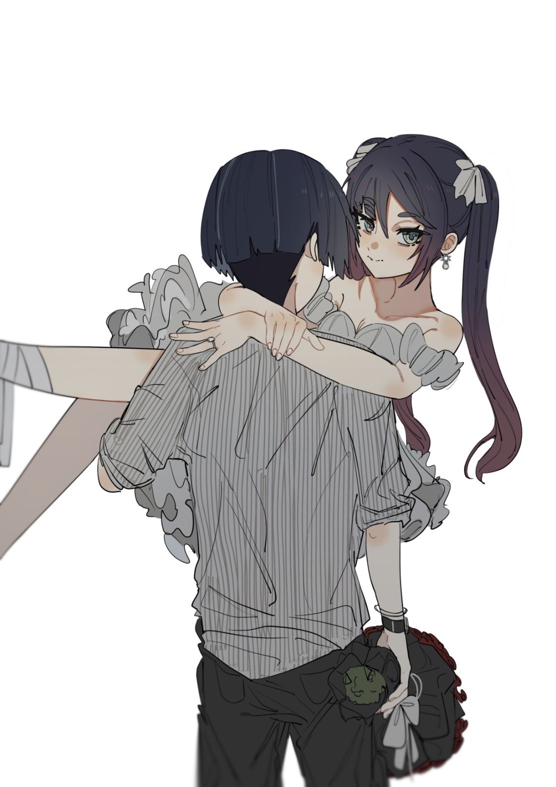 1boy1girlalternate costumeaqua eyesarm at sidearms around neckbaggy pantsbare shouldersblack hairblack pantsblushbouquetbowcarryingcasualclosed mouthcollarbonecontemporarydetached sleevesdressearringseyelashesfacing anotherfingernailsflowerformal clothesfrilled dressfrillshair bowhand on another's shoulderhand on own armheteroholdingholding bouquethusband and wifejewelryleg wraplong hairlooking at viewerpantsprincess carryred flowerringshirtsidelockssleeves rolled upsmilestraplessstrapless dressstriped clothesstriped shirtstriped sleevestsurimetwintailswatchwedding ringwhite backgroundwhite bowwhite dresswhite shirtwhite sleeveswristwatch