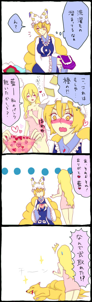1boy3girls4komaanimal earsblonde hairbloodblushbreastscleavagecomicfemale focusfox earsfox tailhatheartlarge breastslaundrylong hairmultiple girlsmultiple tailsnaked towelpantiesplaid clothesplaid pantiesshort hairsweatdroptailtowelunderwearunworn pantiesyellow eyes