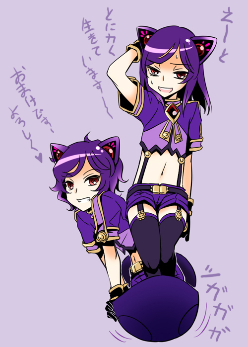 00s2boysmultiple boyspurple hairpurple themered eyesshortssweatdropthighhighstrapzettai ryouiki