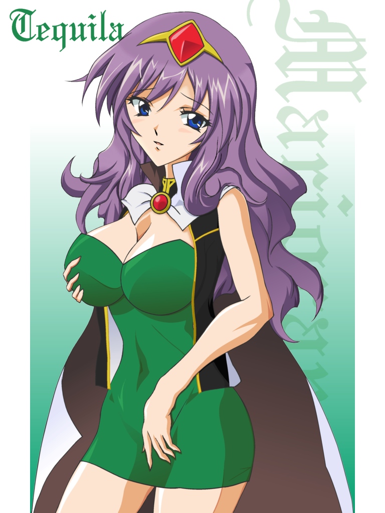 00s1girlblue eyesblushbreastscapecharacter namecircletcleavagedressfemale focuslarge breastslong hairpurple hairsolo