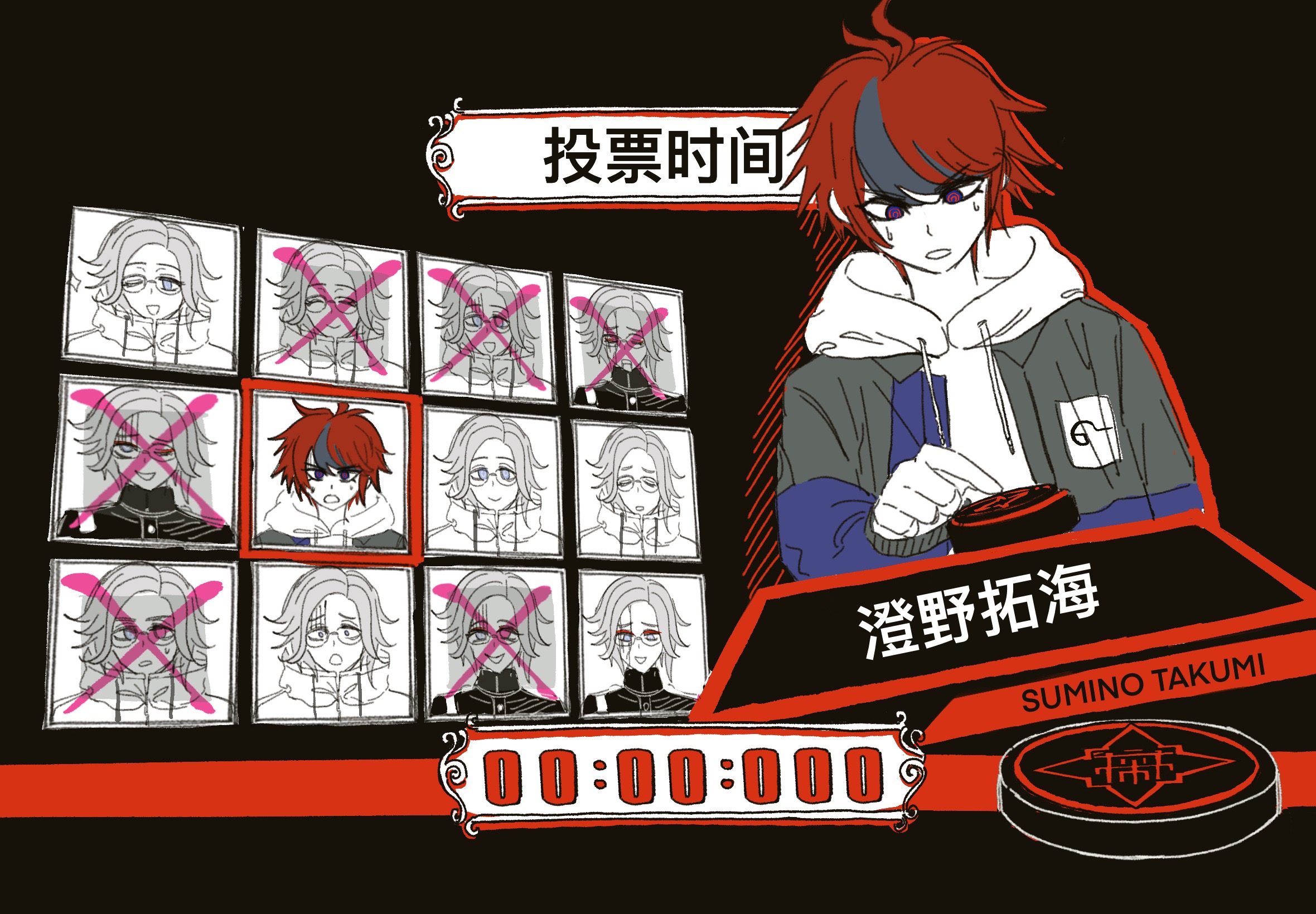 1boyblack glovesblack jacketblack streaksblue eyesblue jacketcharacter namechinese textchoiceclosed eyescolored skincountdown timerdrop shadowevil smileeyelinerfwdzmmmmgakuranglassesglovesgrey hairgrey jackethoodhoodiejacketjacket over hoodielast defense academy school uniformlooking at viewermakeupmale focusmulticolored hairmulticolored jacketmultiple personaodd one outone eye closedopen clothesopen jacketportrait (object)push-buttonred eyelinerred hairschool uniformshort hairsmilestreaked hairsweattwo-tone jacketwhite hoodiewhite jacketwhite skin
