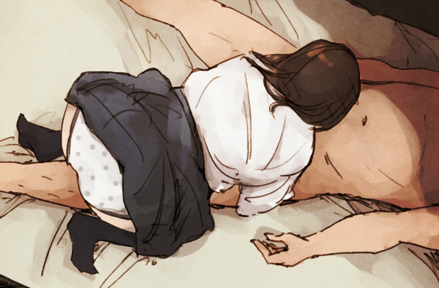 black hairblack legwearfellatiofemaleFlag for Deletionfrom abovenavelno shoesoralpantiespolka dotpolka dot pantiesschool uniformskirtskirt liftunderwear