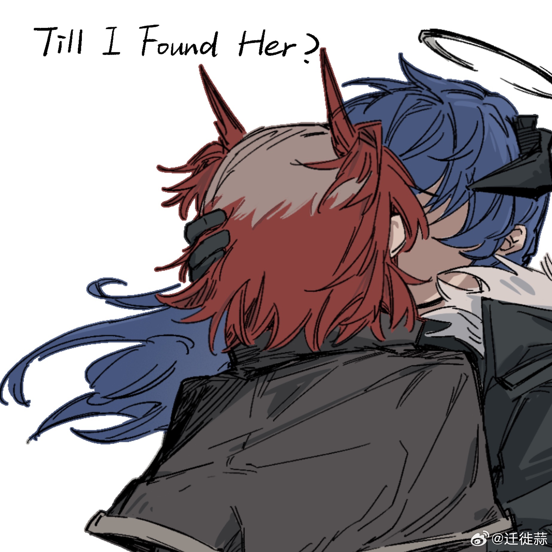 2girlsblack glovesblack jacketblue hairfloating hairgloveshalohead wingshornsjacketkisslong hairmultiple girlsred hairshort hairsimple backgroundupper bodywatermarkweibo watermarkwhite backgroundwingsyuri