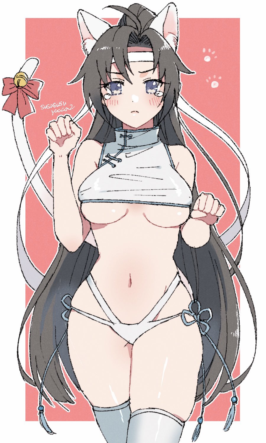 1boy1girlahogealternate costumeanimal earsbare armsbare shouldersbellbikiniblack hairblushborderborrowed clothesbowbreastscat earscat girlcat tailchinese clotheschinese knotclosed mouthcowboy shotcrop topfrowngenderswapgenderswap (mtf)hands upheadbandhigh ponytailhighlegjingle bellkemonomimi modelarge breastslong hairlooking at viewernaveloutside borderpantiespaw posepaw printponytailpurple eyesred bowrevealing clothesribbonshirtside-tie pantiessignaturesimple backgroundsleevelesssleeveless shirtsolostandingstomachsweatdropswimsuittailtail belltail bowtail ornamenttearsthighhighsthighstwitter usernameunderboobunderwearv-shaped eyebrowsvery long hairwhite bikiniwhite borderwhite headbandwhite pantieswhite shirtwhite thighhighsyaichi00