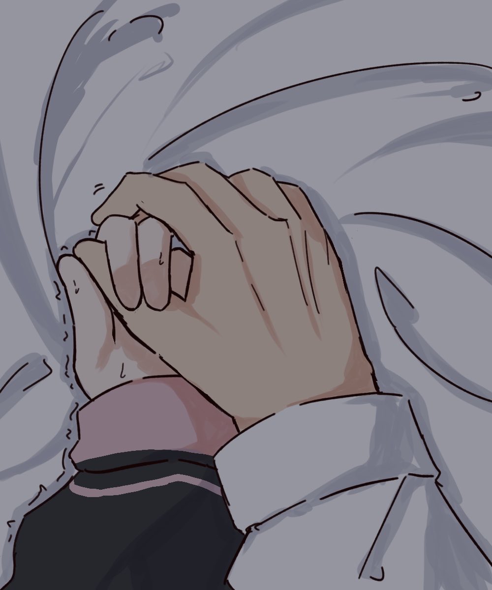 1boy1girlbed sheetclose-upfinger grabguratani88413hand focusholding handslong sleevestrembling