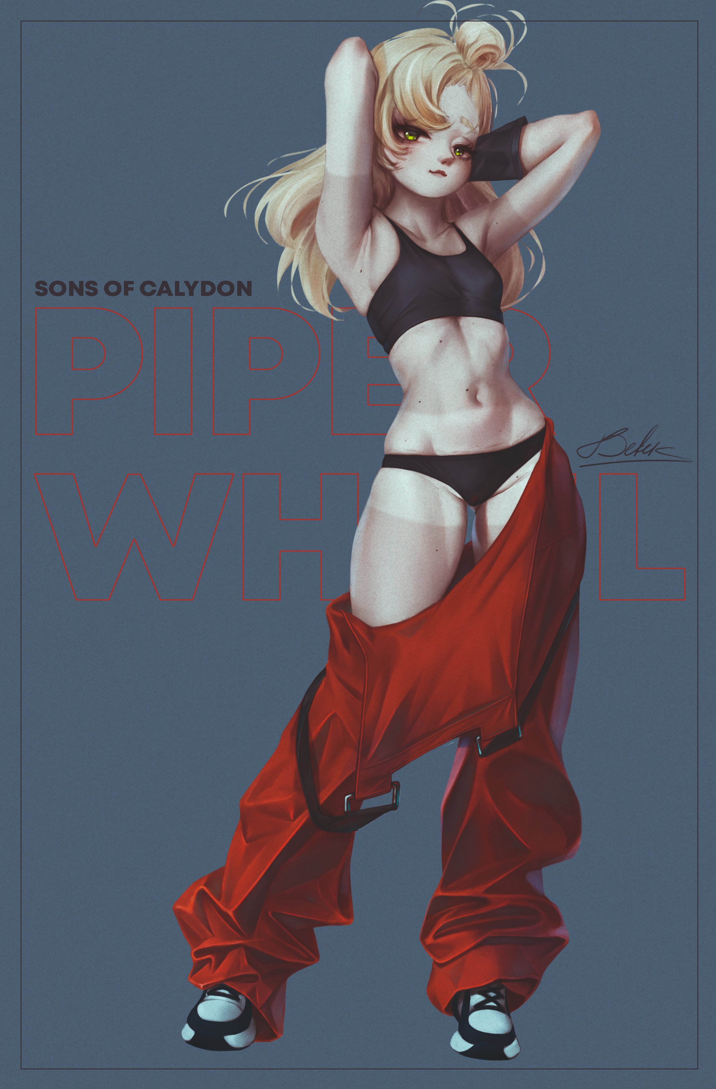 1girlarms behind headarms upblack glovesblack pantiesblack tank topblonde hairbreastscharacter nameclosed mouthcrop topfull bodyglovesgreen eyesgrey backgroundgroinlong hairlooking at viewermolemole on armpitmole on crotchmole on stomachmole on thighnaveloverallspantiesred overallssingle glovesmall breastssolostandingstomachstrap sliptantank toptanlineunderwear
