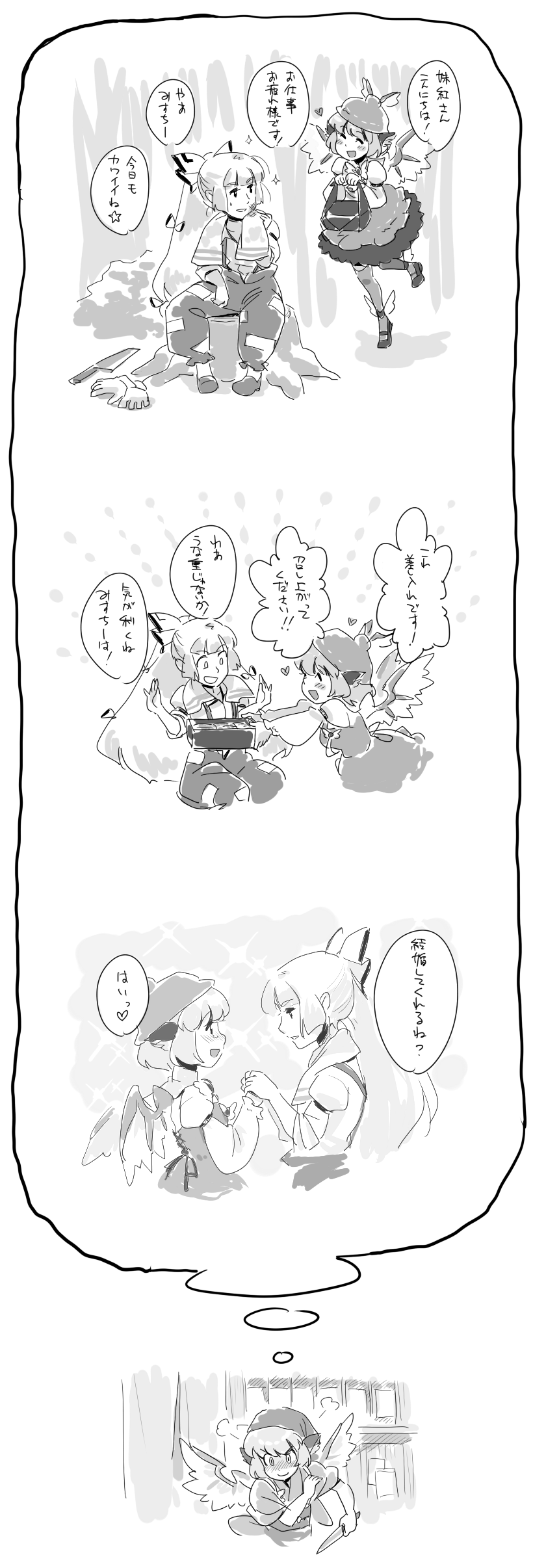2girlscomicfemale focusgiftgreyscaleimaginingknifemonochromemultiple girlsspeech bubblethought bubbleyuri