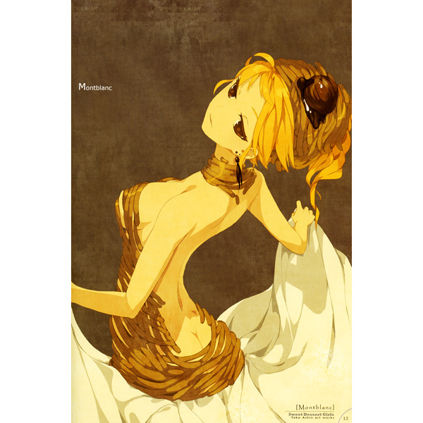 1girlbackbackless outfitbare backblonde hairbreastsbrown eyesbutt crackcovered erect nipplesdressearringsfemale focusfoodjewelrymedium breastsnecklacesolo