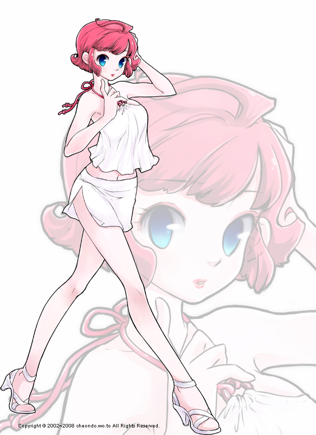 1girlblue eyescamisolefemale focushigh heelsjewelrymidriffnavelnecklacepink hairshoesshort hairskirtsolozoom layer
