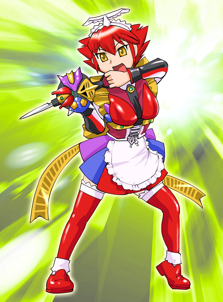 1girlapronfemale focusfull bodygenderswapgenderswap (mtf)maidmaid apronred hairshort hairsolostandingthighhighs