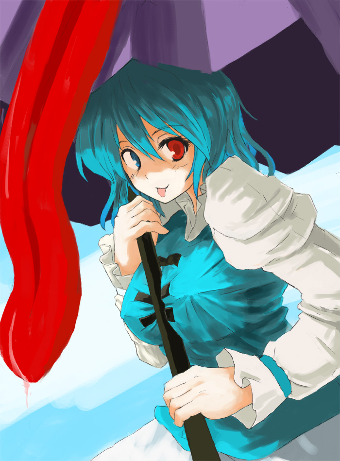 :p1girlblue eyesblue hairbreastsfemale focusheterochromiakarakasa obakelarge breastsmatching hair/eyesoil-paper umbrellared eyesshort hairsolotonguetongue outumbrella