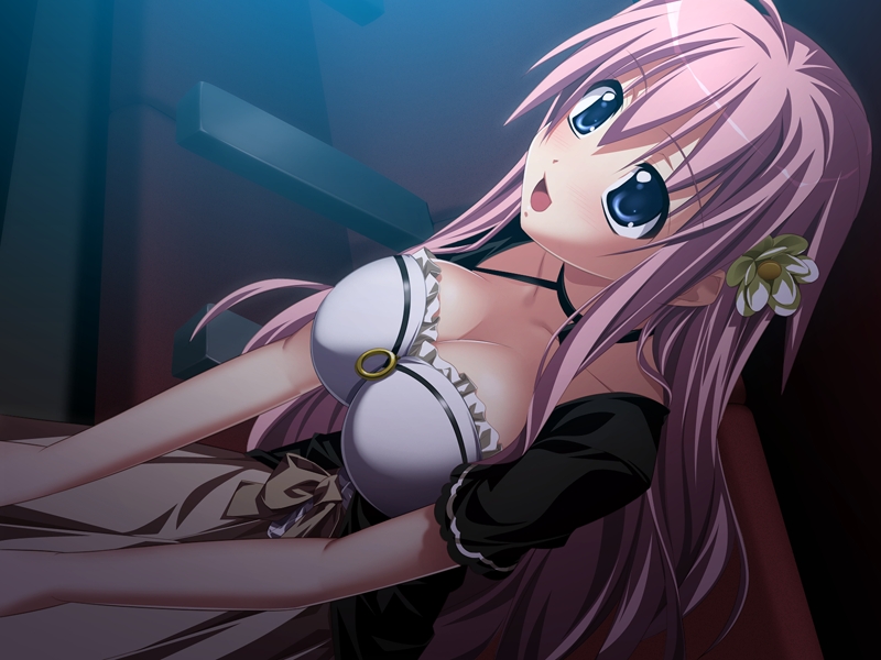 1girlblue eyesbreastscleavagedutch anglefemale focusflowerhair flowerhair ornamentlong hairlooking uppink hairsolo