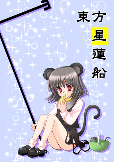 1girlanimal earsbasketcheesefemale focusfoodgrey hairmouse (animal)mouse earsmouse tailred eyesshort hairsolotail