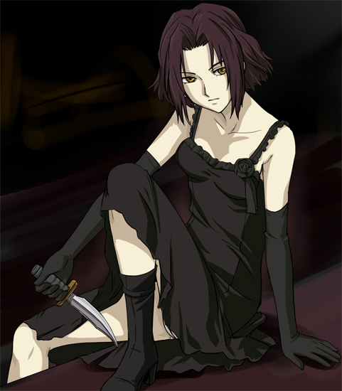 kooh (pangya), papel (pangya), pangya, lowres, 1girl, black dress, black hair, brown eyes, dress, female focus, poorly drawn, solo, star (symbol), twintails