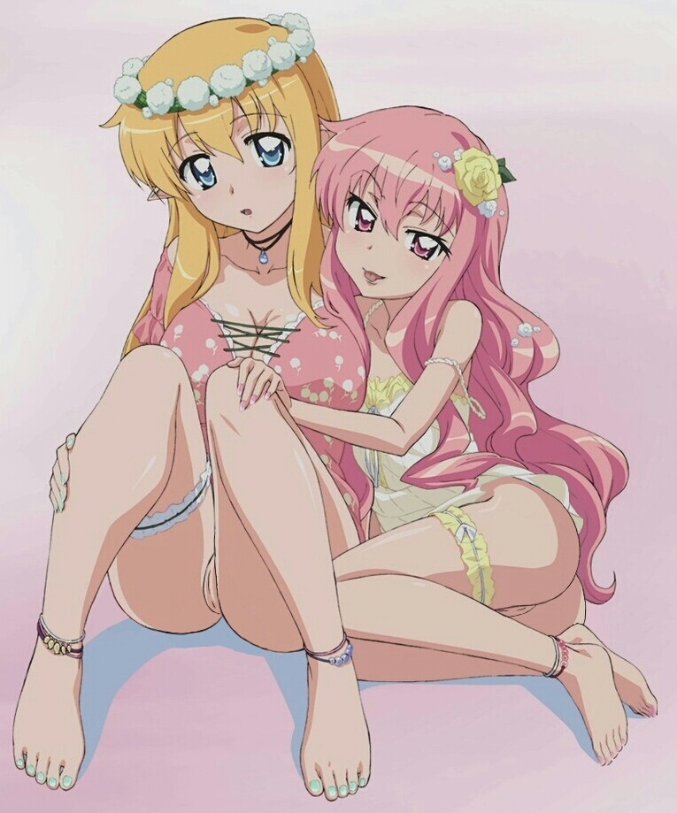 2girlsankletbabydollbarefootblonde hairblue eyesbreastscleavagecoverelffeetfemaleFlag for Deletionflowerfrillshair flowerhair ornamenthead wreathjewelrylarge breastslong hairmultiple girlsnail polishnaughty facenecklacepink eyespink hairpointy earspussysittingstrap sliptoenail polishtoestongueuncensoredyuri