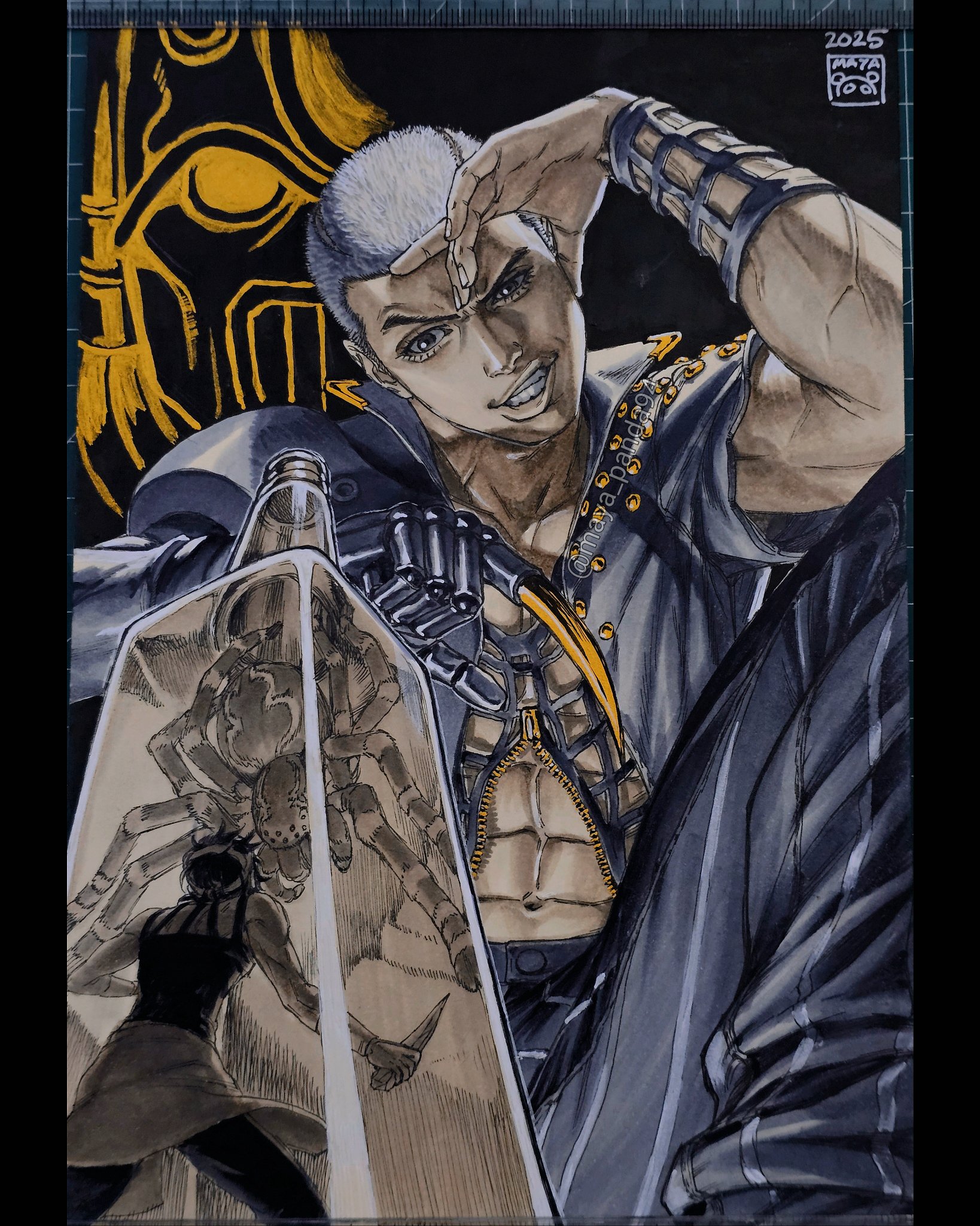 2boysabsblue hairbottlebugbuzz cutchainclaw (weapon)clawsclenched teethfusiongrey hairgrinhairbandjacketlimited palettemale focusmechanical armsmerging bodiesmini personmultiple boysopen clothesopen jacketpantsparted lipsprosthesisshort hairsingle mechanical armskirtsmilesolospiderstand (jojo)tank topteethtonedtoned malevery short hairweaponwristbandzipper