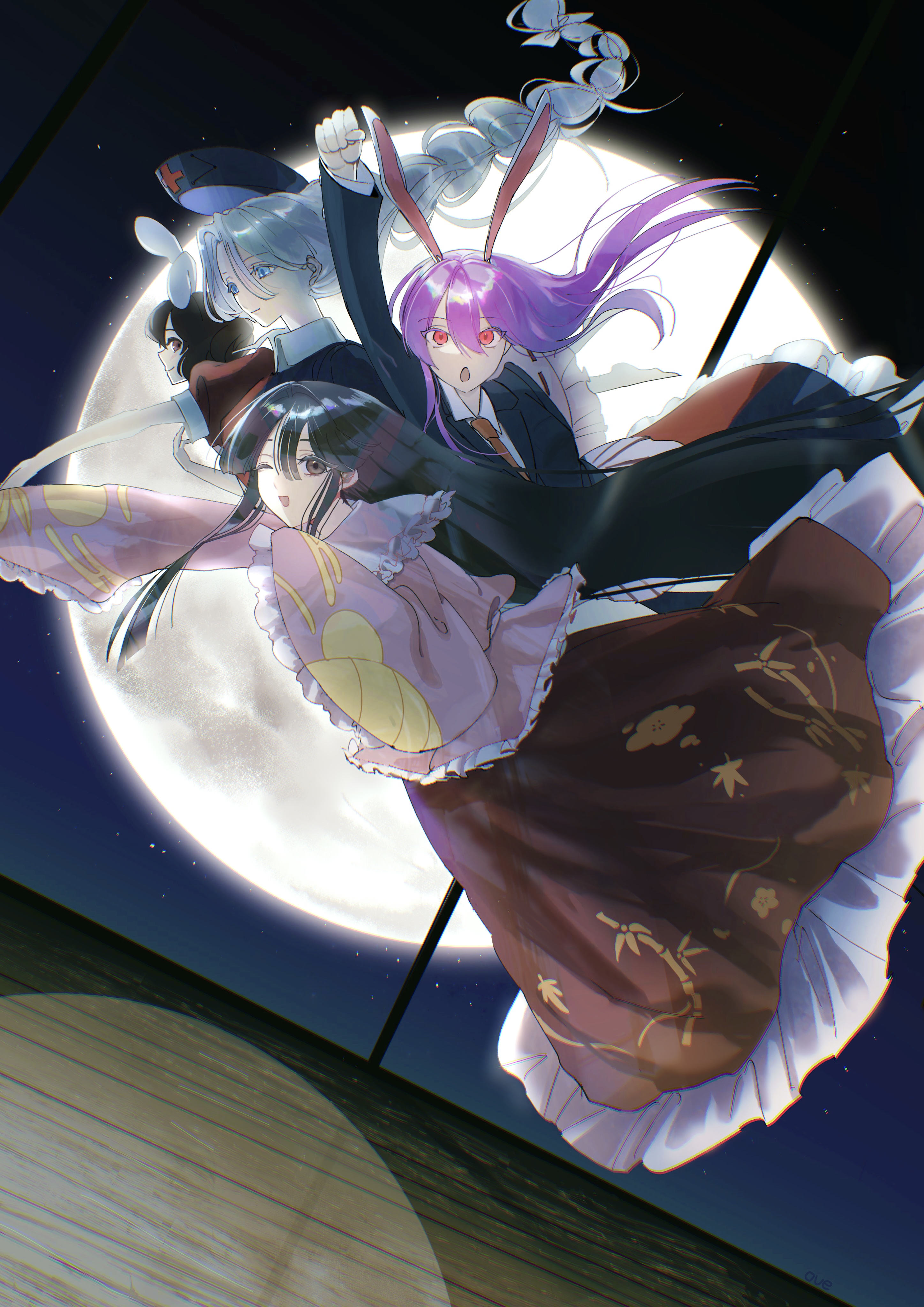 4girlsanimal earsarm upblack hairblack jacketblue dressblue eyesbraidbrown eyesbrown hairclenched handclosed mouthdresseienteifloatingfrillsfull moonhair between eyeshatjacketlong hairlong sleeveslooking at viewermedium hairmoonmultiple girlsnecktienurse capone eye closedopen mouthpink shirtpink skirtpuffy sleevespurple eyesrabbit earsrabbit girlred dressred eyesred necktieshirtshort sleevesskirtskysmilestar (sky)starry skytwo-tone dressvery long hairwhite hairwhite shirt