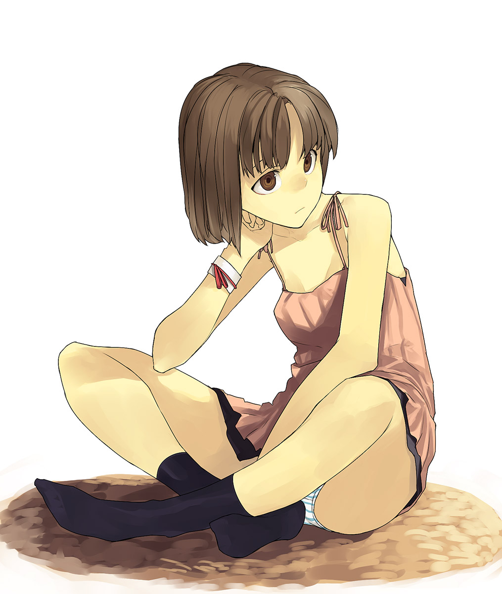 1girlcamisolefemale focuspantiespantyshotshort hairsockssolostriped clothesstriped pantiesunderwear