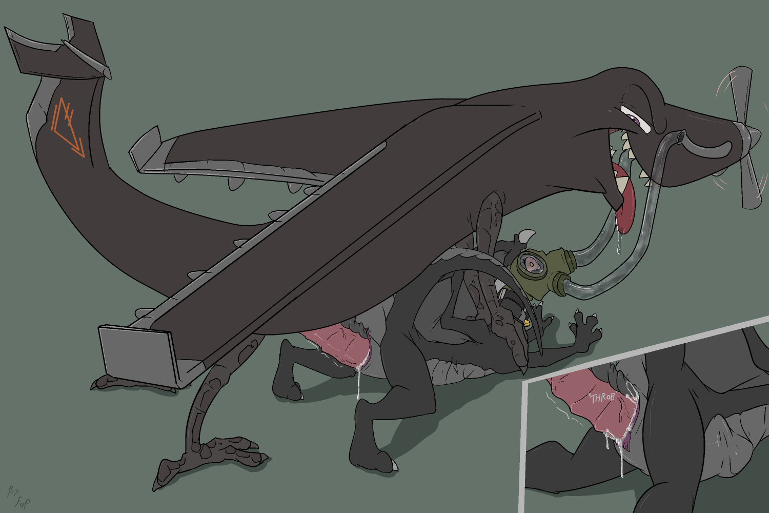 aircraftairplanedragonfemaleFlag for Deletiongas maskliving aircraftliving machinemachinemalemaskpenetrationpinnedsmokestomach bulgevaginal penetration