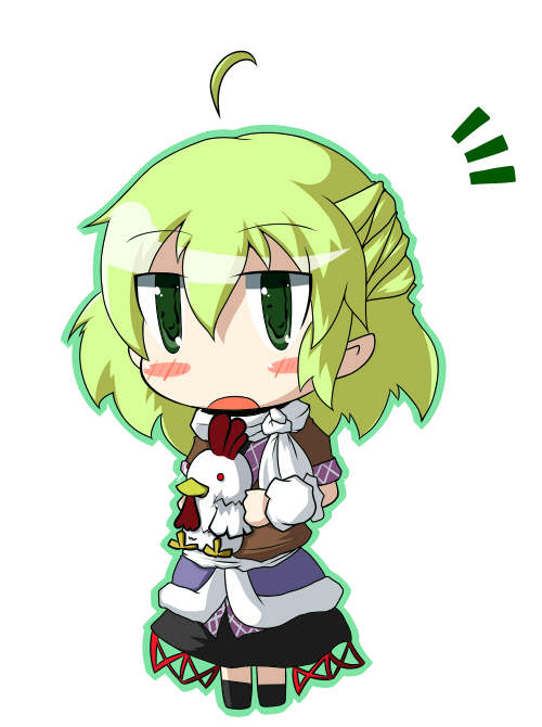 1girlahogearm warmersbirdblonde hairchibichickenfemale focusgreen eyeshalf updoscarfshort hairsolostuffed animalstuffed toy
